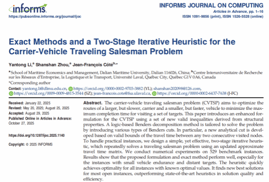 近日,乐竞体育李延通副教授作为第一作者的研究成果“Exact Methods and a Two-Stage Iterative Heuristic f...[详细]