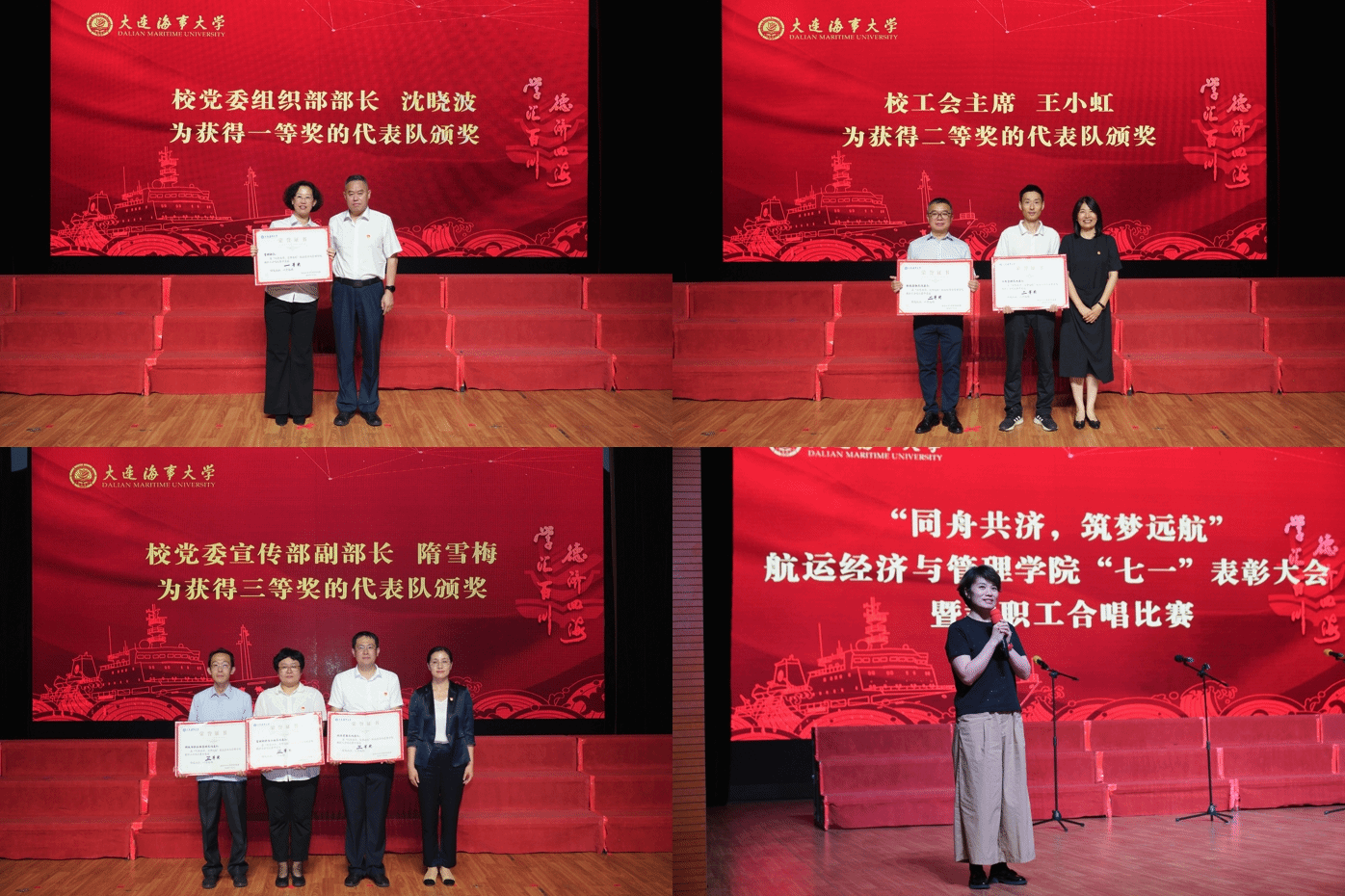 经评审打分,学院管理联队《强军战歌》《祖国不会忘记》荣获一等奖,工商管理系代表队《错位时空(五四版)》和航运金融系代表队《万疆》获二等奖,经济贸易系代表队《我和我的祖国》、管理科学与工程系代表队《我们走在大路上》和物流与供应链管理系代表队《大中国》获三等奖。大连爱乐交响合唱团首席指挥刘雅男进行大赛点评。