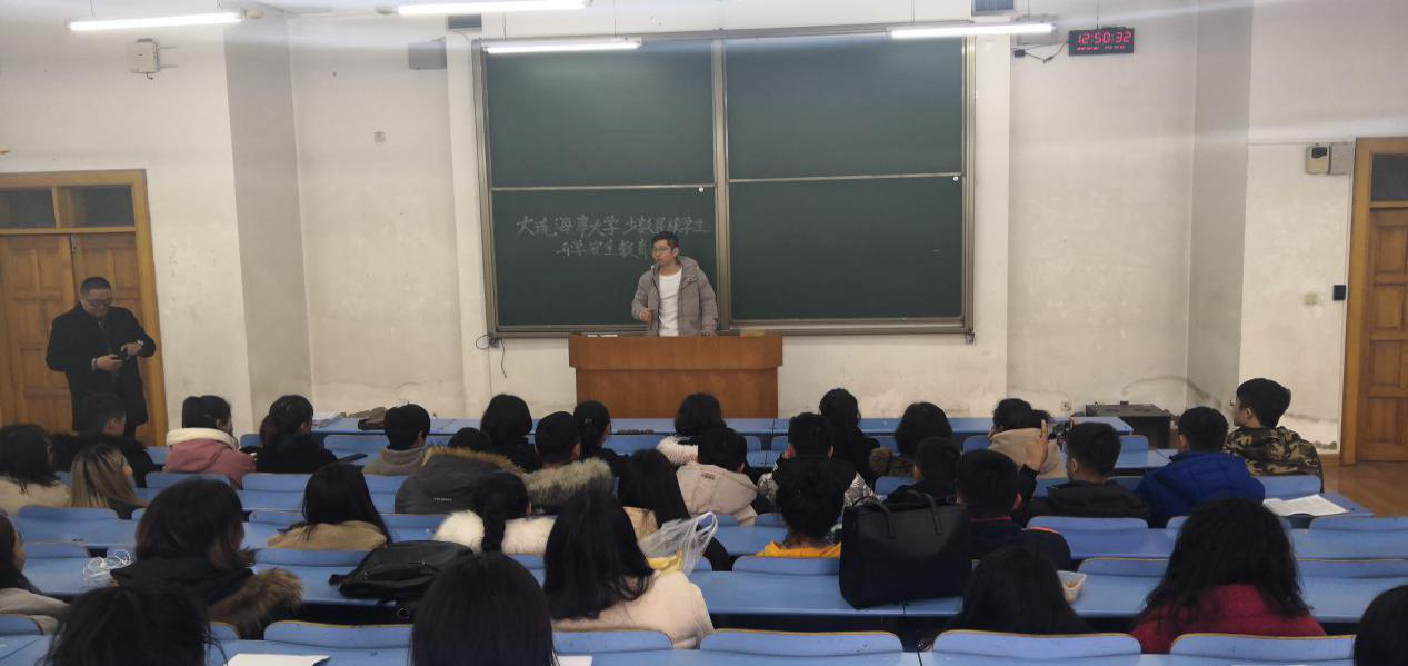 谭刚老师根据新疆教育厅工的作要求,结合海事大学少数民族大学生的管理与服务情况,希望同学们严格遵守校纪校规,重视学习,坚定自己的理想信念,正确认识新疆长治久安的重要性和历史性,要成为海事大学优秀的少数民族青年大学生。并再次强调了同学们在校期间人身安全,财物安全和网络安全等注意事项。指导员吐尔逊简要的介绍了国家少数民族骨干研究生培养计划,鼓励同学们积极报名参加考试。并举例自己的就业经历说明了把握好党和政府的各项政策对个人发展的重要作用,扩招少数民族专职辅导员对改变自己人生格局重大影响,与会的老师和同学们以热烈的掌声给与了肯定。他保证对所有同学保持24小时开机,这既是工作需要,也是服务好同学们的一种承诺。