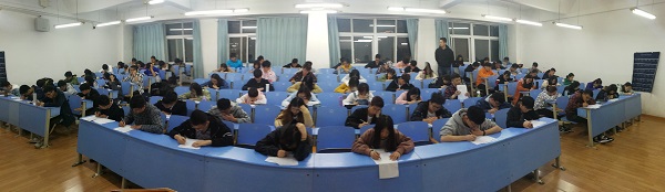 信息管理与信息系统专业于5月6日晚8点在学汇楼考试,请假一人,焉洪基导员监考,在全体人员落座后,焉导首先宣读了考试纪律和考试规则,之后让各班学习委员下发试卷,考试开始。考试于45分钟后结束,各班学委将学生的试卷收好,统一交给焉导,之后送往曹妍老师处批改阅卷。电子商务专业于5月9日下午两点开始考试,由两个班的学委进行监考,两位学习委员认真地巡视考场,现场考试纪律良好,半个小时后组织同学依次上交试卷并离场。物流管理专业于5月12日晚6点开始考试,时长一个半小时,同学们认真答卷,用最严格的态度要求自己,坚决杜绝作弊和交头接耳现象,用最真实的成绩,来为自己阶段性学习的成果交一份答卷。