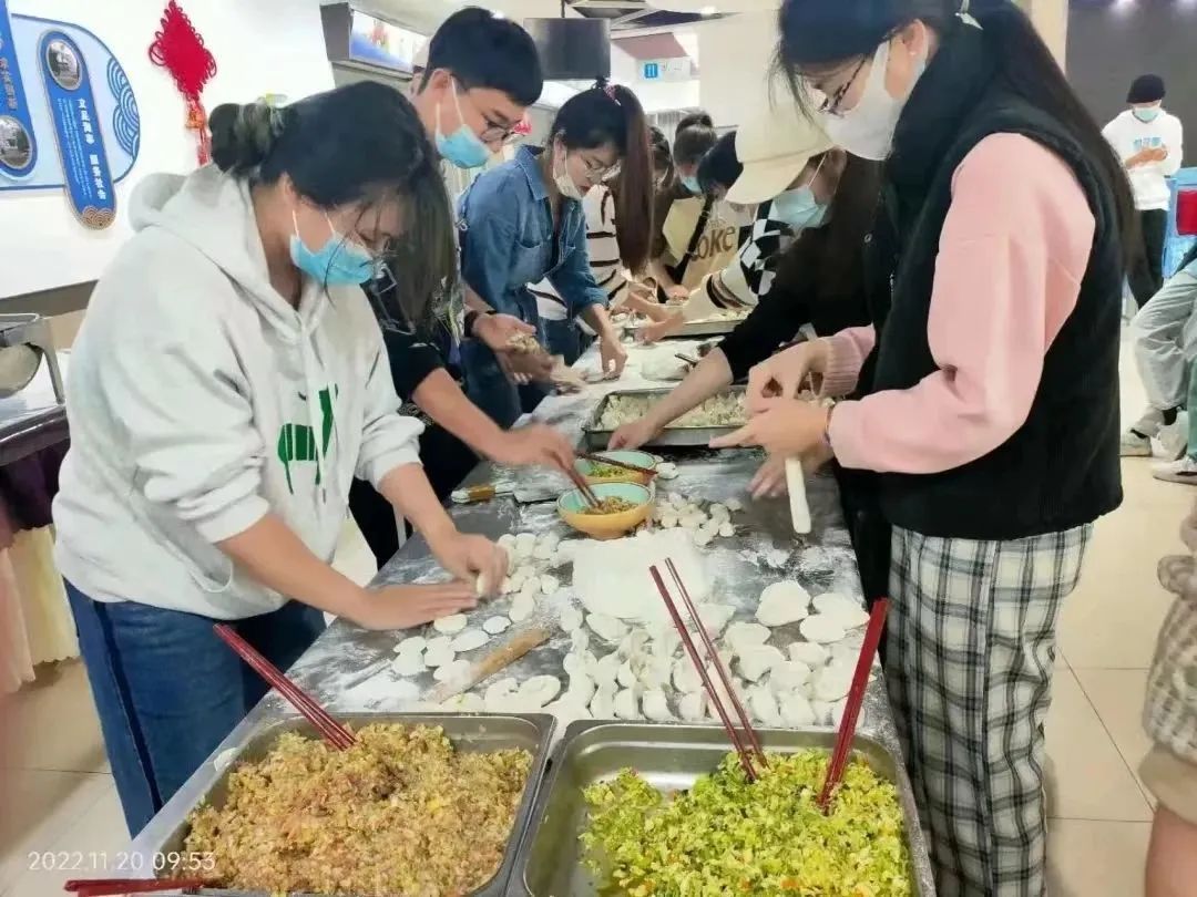 饺子作为中国传统美食和年味的象征,寓意团聚合欢,吉祥如意。在寒冷的冬天,在封闭的校园,吃上一碗自己包的热气腾腾的饺子,温暖的不止身体,还有心灵。原本不熟悉的同学们齐聚一堂,分工合作,欢声笑语中,一个个可爱的饺子诞生。饺子包住的不仅是馅儿,也包住了惊喜和情谊。