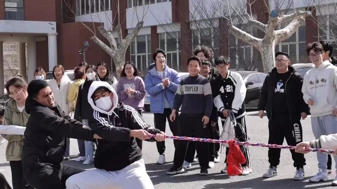 “一二一二!”牡丹亭前,同学们洪亮激昂的呐喊声响彻天空。每个同学都斗志昂扬、全力以赴地对待这一场趣味拔河赛。纵然面红耳赤、精疲力竭,仍咬紧牙关不松手,坚持到最后一刻。场上是对手,场下是朋友,一根绳子连接着大家的心。不论输赢,大家青春的模样都在那天的暖阳下闪闪发光。
