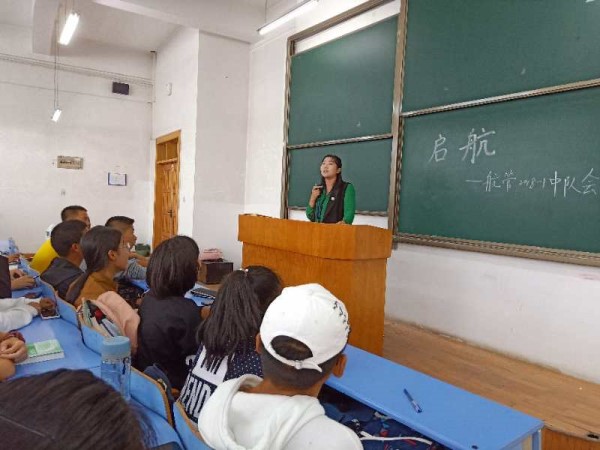 2018-1中队于2018年9月27日在学汇楼103教室开展了以“启航”为主题的中队会议,本次中队会由指导员白汝坤主持,兼职指导员曲乐和中队全体新生均参与了本次中队会议。