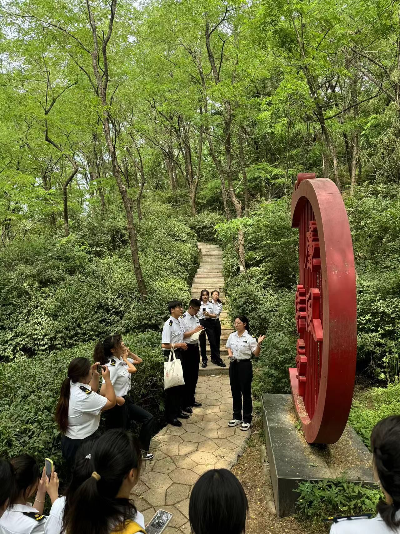 在公园入口,有着一面醒目的“百廉墙”,100个字形各异的 “廉”字,是由西岗区各行业优秀代表书写而成的,寄托着他们对廉政文化建设与发展的美好祝愿,怀揣着这份期许,大家走进了本次的寻“廉”之旅。拾级而上,同学们依次参观了“笃行路”、“廉政牌”、“廉风乐章”、“品莲台”等独具特色的廉政文化景观。